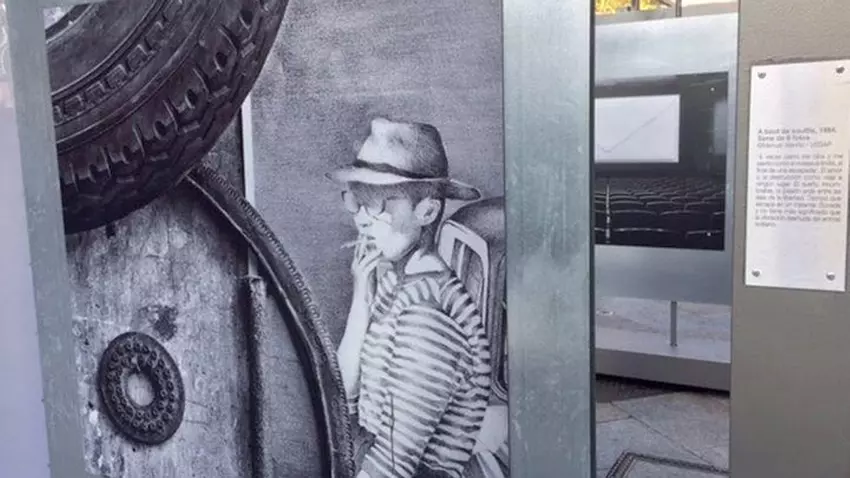 Están el músico Andreu Catalá con Santiago Segura en ‘El gran Vázquez’; y el artista Antonio Lafuente, con un fotomontaje en BN tocado y coloreado a mano con acuarelas, Chema Conesa, Cristina Gª Rodero, y con ella Laura Torrado, artista e doctora de Bellas Artes, Francesc Catalá-Roca, ya fallecido… El gran Joan Fontcuberta con un fotomosaico, ‘Googlerama: la obra maestra’, 2006, basado en el Balzac de ‘La chef-d’oeuvre inconnue’ y la película de Rivette, en la que se ve a Gillete como modelo de Frenhofer, Ciuco Gutiérrez o el cine dentro del cine desde ‘Todo sobre mi madre’ de Almodóvar; Manuel Vilariño quien, de la licenciatura en biología en Santiago se ha hecho poeta y convertido en un gran artista visuales, hace una serie de seis fotos basada en ‘A bout de souffle’ de Godard, uno de los iconos de la Nouvelle vague… Una de las obras más vistosas está firmada por Ouka Lele (Bárbara Allende), un retrato simpático de la serie peluquería con Alberto Guspi, una aproximación de fotografía y pintura. También gustará por su interés atávico ya desde lo etnográfico las vacas gallegas ante la puerta de un cine, obra del catalán Rocard Terré, quien vivió en Galicia, falleciendo en 2009 en Vigo, donde vivía. Para finalizar, Chema Madoz, confesando desde el B/N como todo comenzó con su profesor de historia del arte el día que substituyó las diapositivas por cine, que luego debían analizar… Las fotografías llegan para introducir al OUFF (Ourense International Film Festival, aquí Festival de Cine Internacional de Ourense), mas también para recordar entre nosotros que el Outono Fotográfico está aquí...