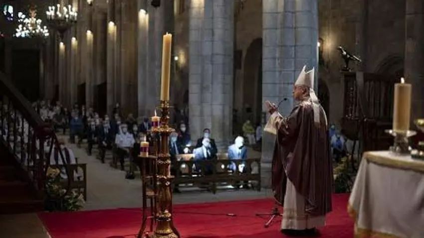 El obispo ourensano, Leonardo Lemos Montanet, ha sido el encargado de oficiar la homilía, dedicada no sólo a las víctimas de la pandemia, sino a todas las personas fallecidas durante los últimos tres meses.