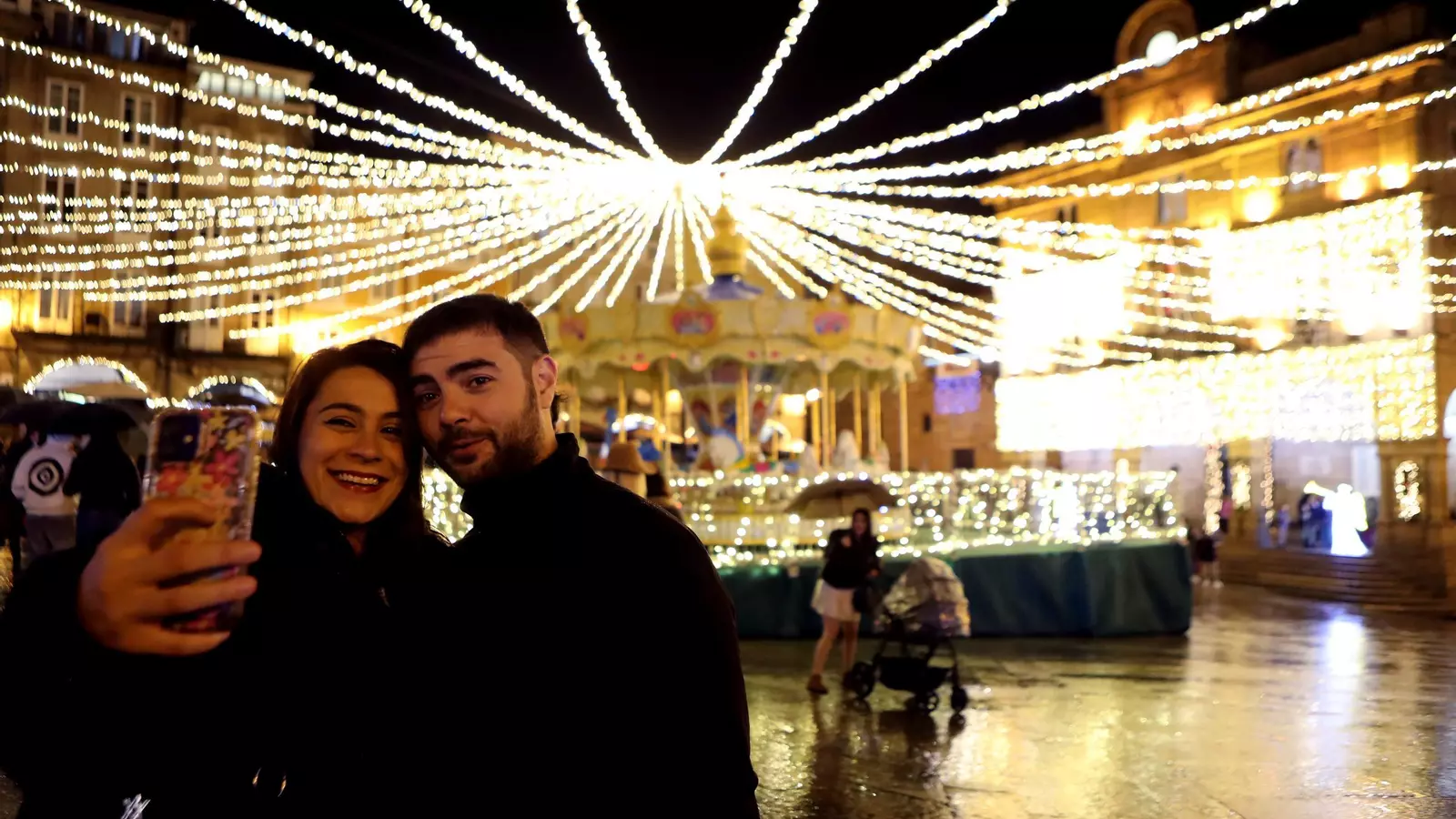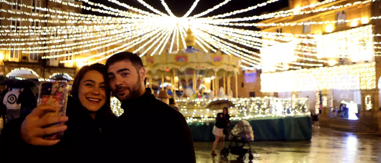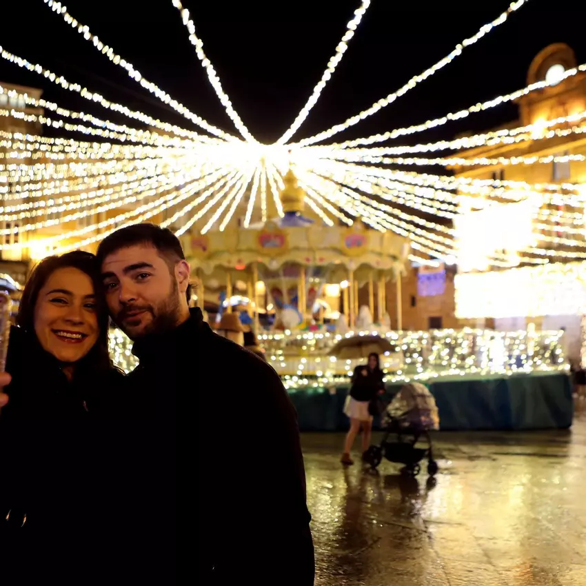 En la ciudad, el epicentro de la fiesta estuvo este año los jardines de Bispo Cesáreo. En medio de un mar de paraguas, un grupo de personas ciegas fueron las encargadas de activar la iluminación, recordando a la ciudad que la Navidad es, ante todo, una experiencia que se toca y se percibe más allá de la vista. Una vez prendida la luz, la atmósfera solemne se tornó canalla. Una banda tributo a Joaquín Sabina tomó el relevo, sustituyendo los villancicos por los versos urbanos del cantautor de Úbeda. Aunque fueron pocos los valientes que se quedaron al concierto bajo la lluvia.
