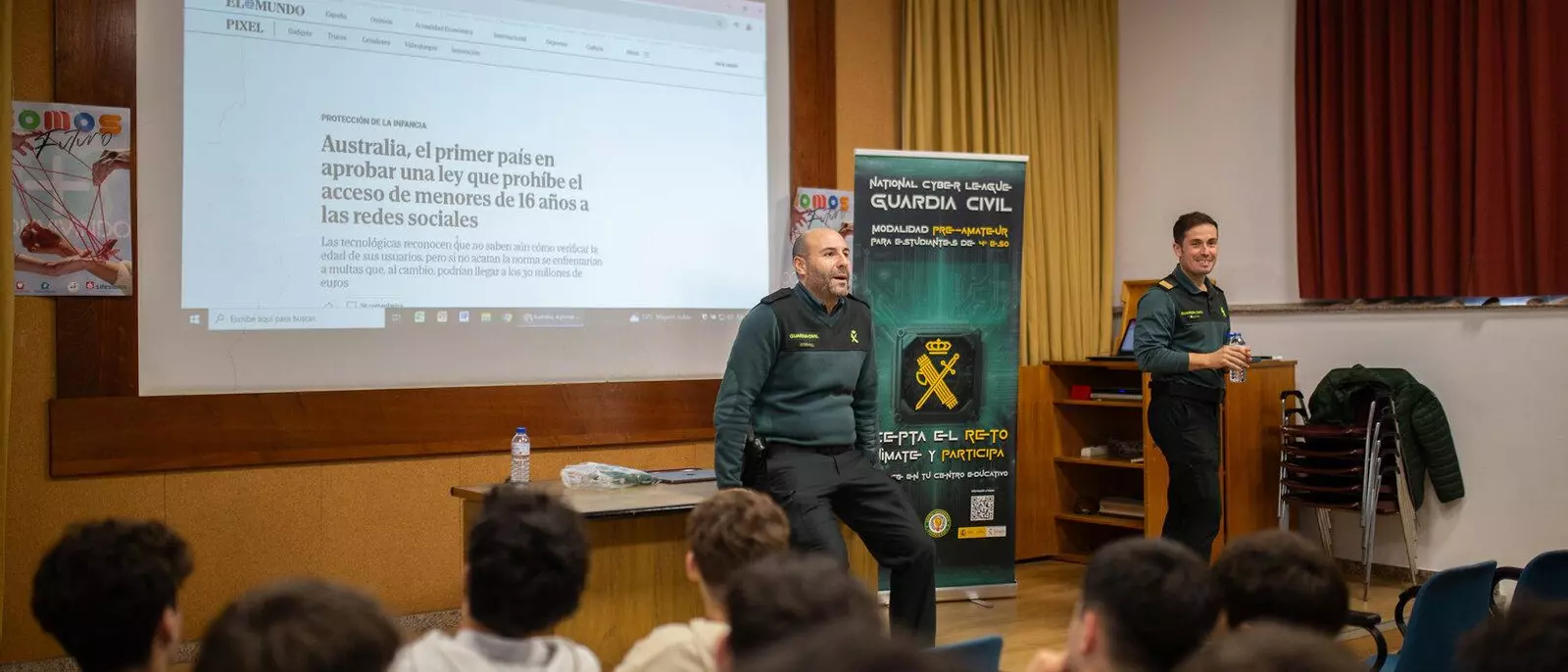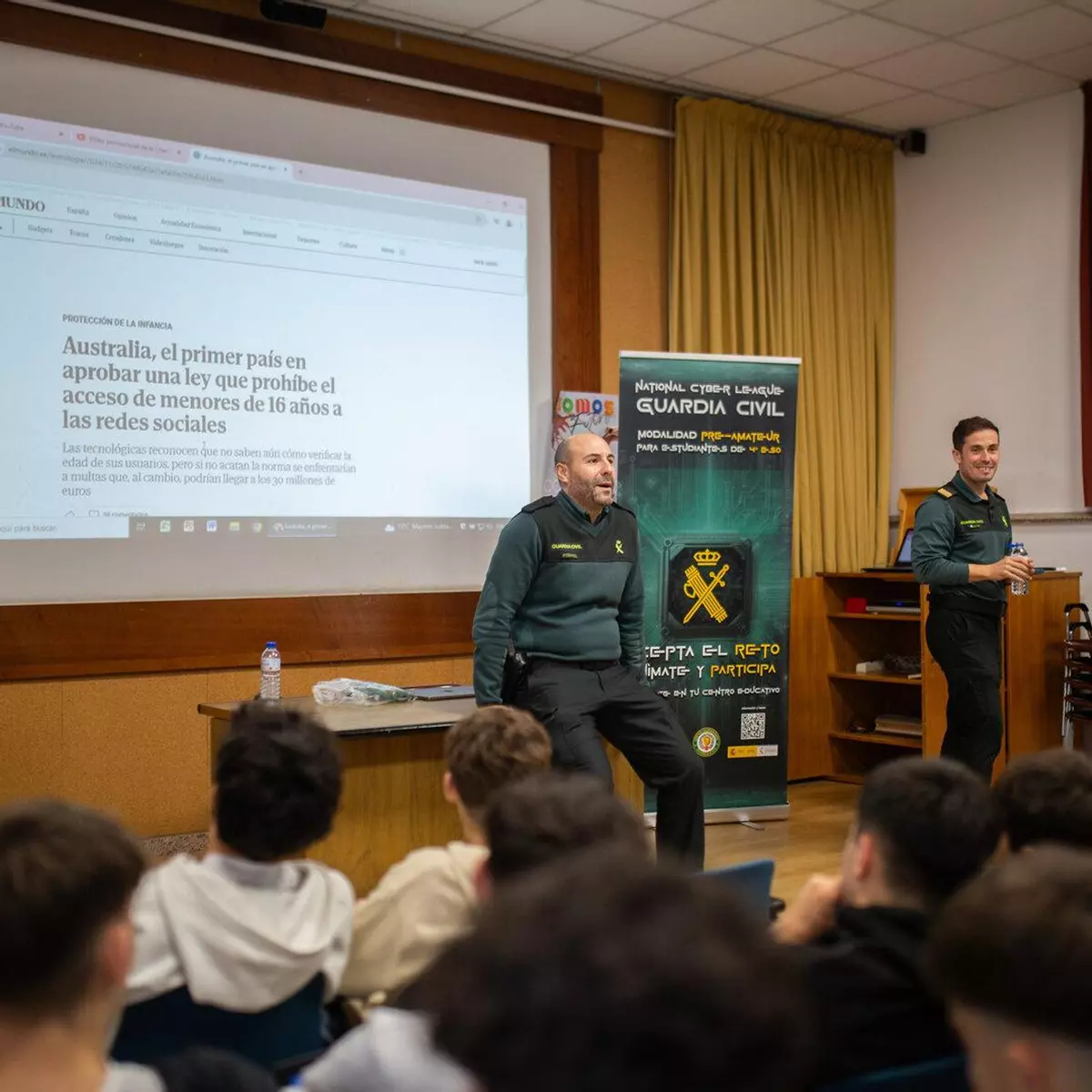 La Guardia Civil de Ourense dio una jornada de Ciberseguridad a los jóvenes alumnos del Colegio Salesianos, para impartir claves de una navegación segura. Comenzaron con una rápida explicación con información sobre ciberseguridad.