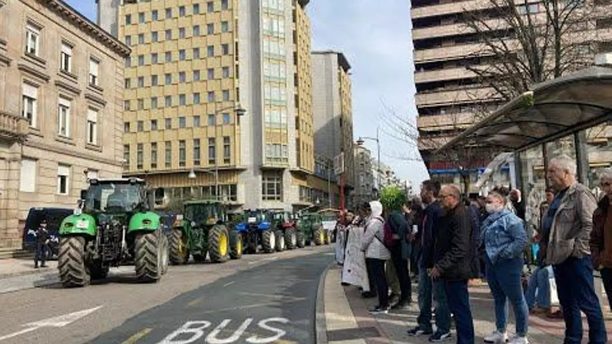 Decenas de tractores empezaron a llegar a la ciudad de Ourense pasadas las 11:30 horas de esta mañana. Lo hicieron por el Pavillón dos Remedios, para dirigirse después hacia la Subdelegación del Gobierno en Ourense, atravesando a su paso las calles Progreso y Juan XXIII.