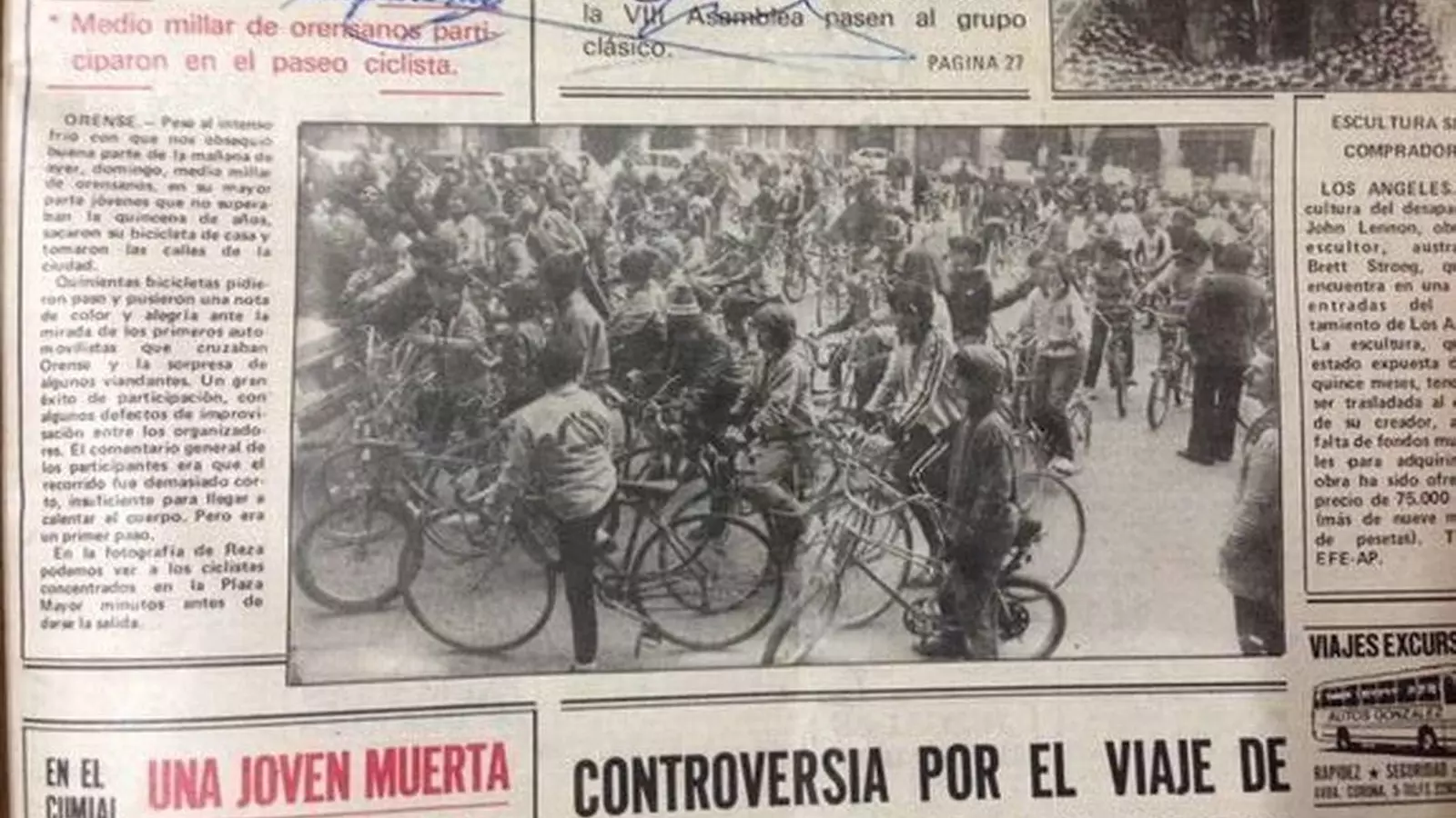 Emilio destaca principalmente a cuatro personas que, junto a él, ayudaron a nacer al Día da Bici. "Saturnino Rego, Carlos Moure, Manuel Miguelez, Ángel Cid y yo nos movimos para fomentar el uso de la bicicleta", explica Fernández. Este inicio reunió en un principio a medio millar de personas, en una jornada con unas condiciones adversas de tiempo. "Los participantes en este paseo ciclista eran jóvenes, entre diez y quince años. Pero también eran muchos los pequeños entre cuatro y diez años, que participaron en el paseo, siendo la ciclista más joven una niña de cuatro años de edad", recoge la La Región el 10 de enero.