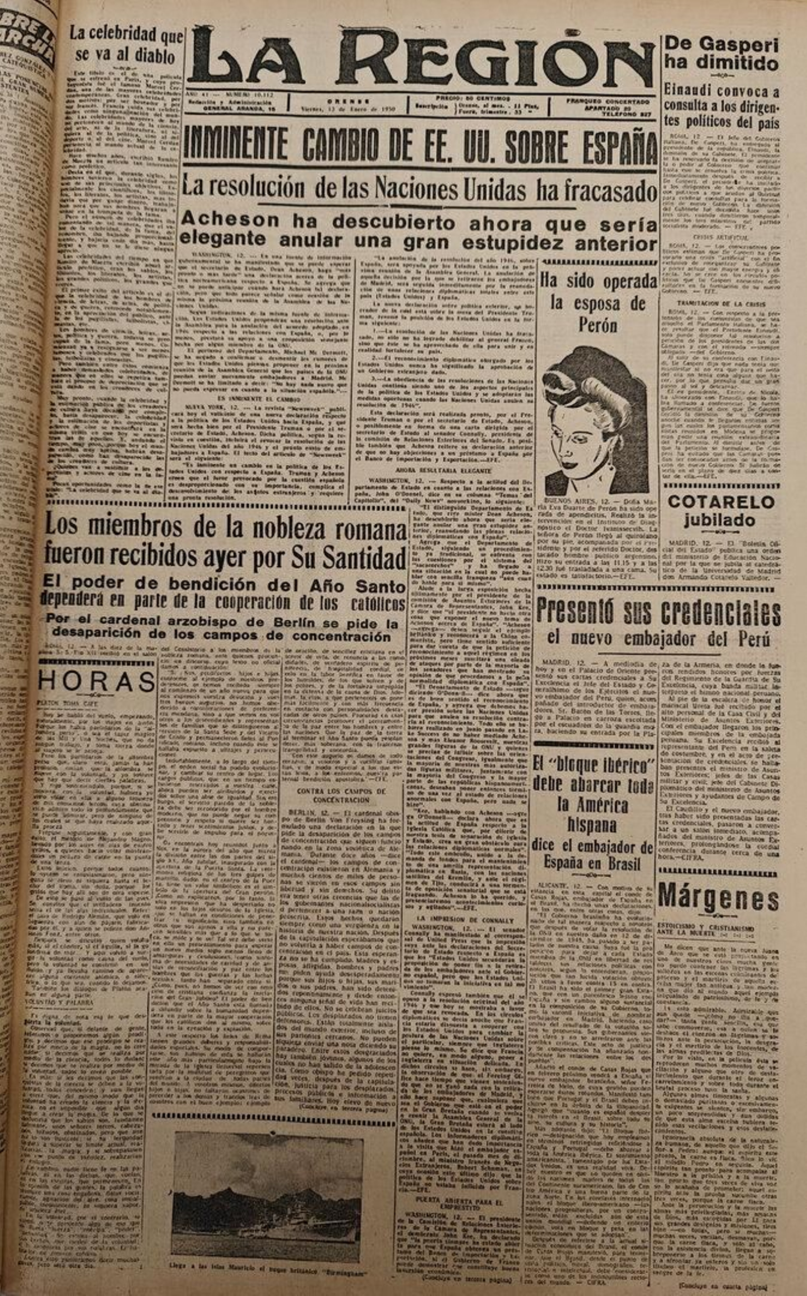 - El gobernador civil de Orense, don Vicente Muñoz Calero, se ausenta para Madrid autorizado por la Superioridad y delega el mando de la provincia en el presidente de la Audiencia, don Joaquín Sarmiento Rivera.