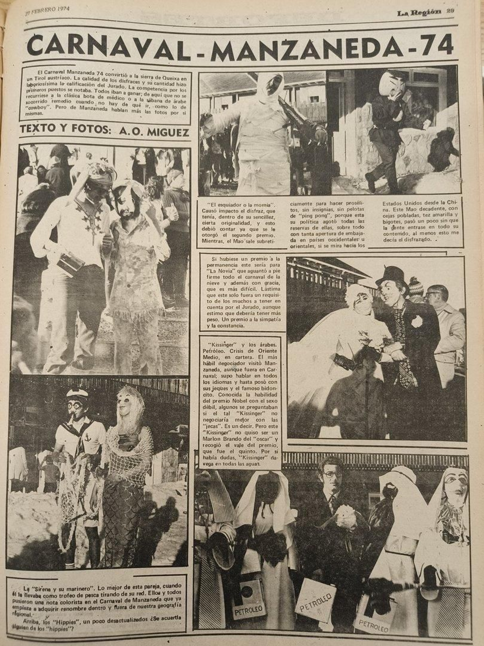 La Estación Invernal de Cabeza de Manzaneda bate todos sus records de concurrencia con la celebración del “Carnaval 74”, con primer premio de diez mil pesetas para el grupo Los Pastores.