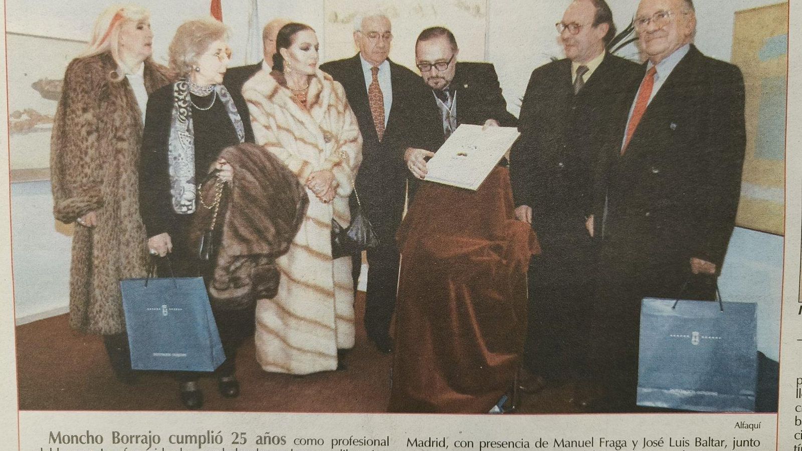 El humorista ourensano Moncho Borrajo cumple 25 años de carrera y presenta en Madrid su libro “25 años y mucho pico”, editado por la Diputación de Ourense, con presencia en el acto, entre otros, del presidente de la Xunta, Manuel Fraga; el presidente de la Diputación ourensana, José Luis Baltar; el político Santiago Carrillo; la cantante y actriz Sara Montiel o el payaso Miliki.