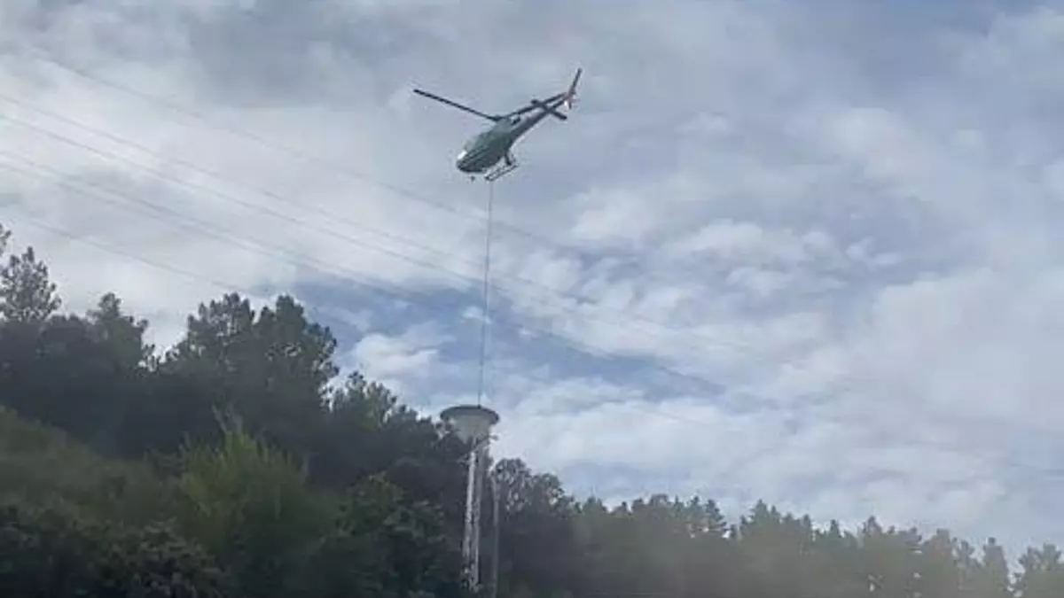 Iberdrola ha iniciado en Ourense los trabajos para renovar los tendidos eléctricos de Alta Tensión de la línea que va de la subestación de la Central de Santiago-Xares a la de Sobradelo. Dada la difícil orografía y accesos a la zona, en algunos de los 20 apoyos que se han cambiado ha intervenido un helicóptero, tal como se puede observar en el vídeo que acompaña a esta información.