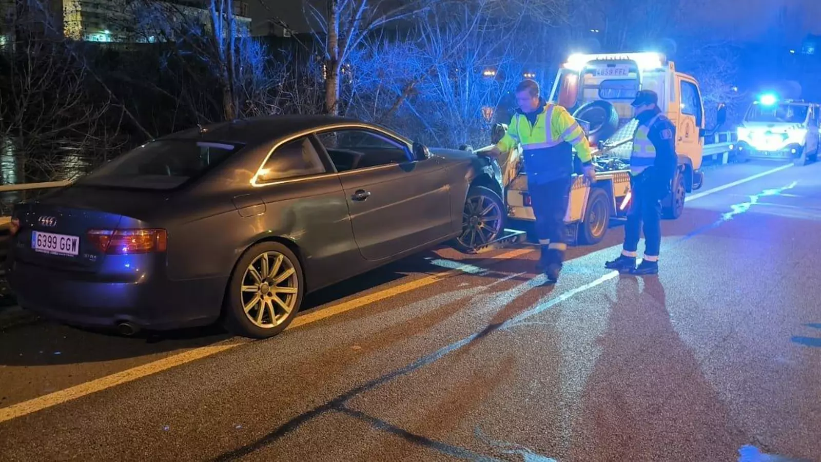 Al lugar acudieron tres dotaciones de la Policía Local, una ambulancia y una grúa para retirar el vehículo de la calzada y a continuación acudió una de asistencia para trasladarlo.