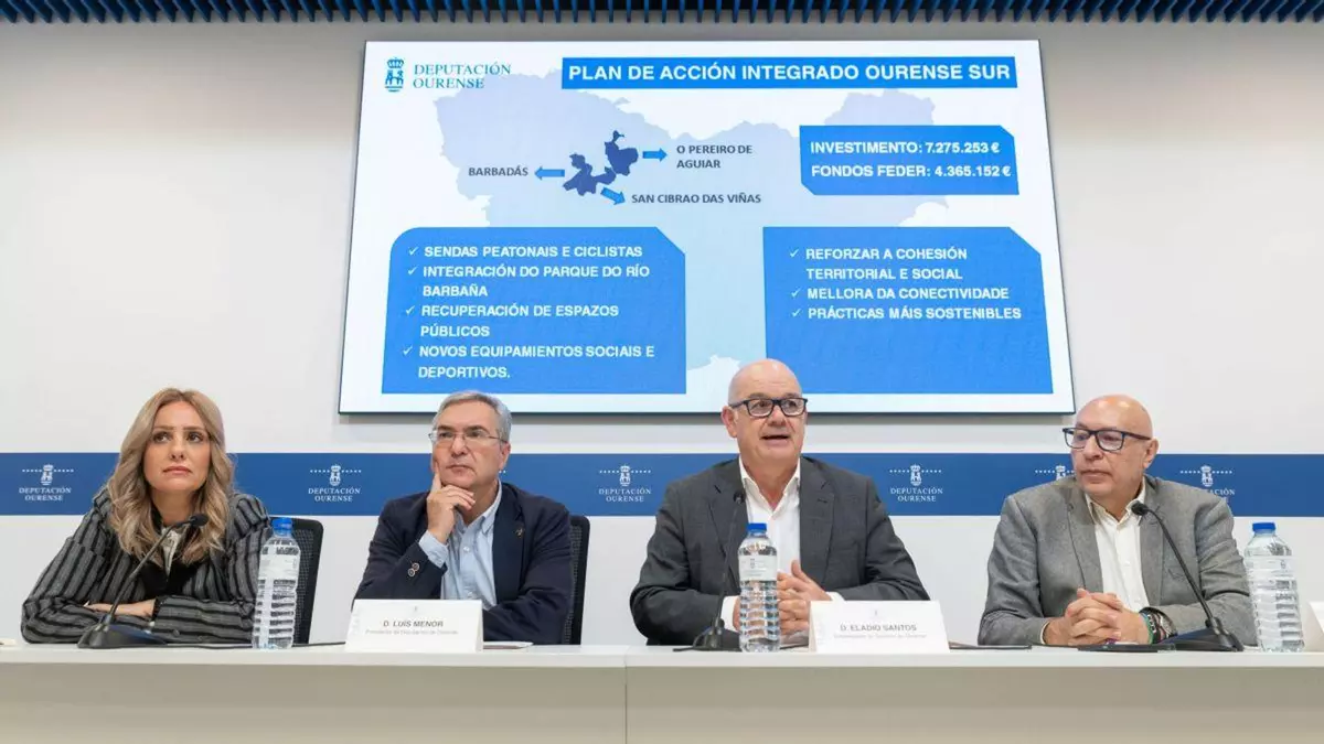 La Diputación de Ourense presentó este miércoles el Plan de Actuación Integrado (PAI) Ourense Sur, una iniciativa estratégica destinada a transformar la zona sur del área metropolitana en un territorio más sostenible, conectado y con mayor calidad de vida. El PAI, desarrollado junto a los concellos de Barbadás, San Cibrao das Viñas y Pereiro de Aguiar, cuenta con una inversión de 7.275.253 euros, apoyada por 4.365.152 euros de financiación europea.