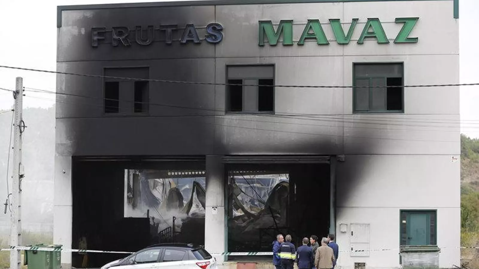 La Guardia Civil mantiene el precintado en lo que quedó de la nave de Frutas Mavaz en el polígono industrial Barreiros, tras el incendio declarado pasadas las seis de la tarde del pasado día 14. El precinto prohíbe el paso a todas las personas, incluidos los propietarios y trabajadores de la empresa, al interior.