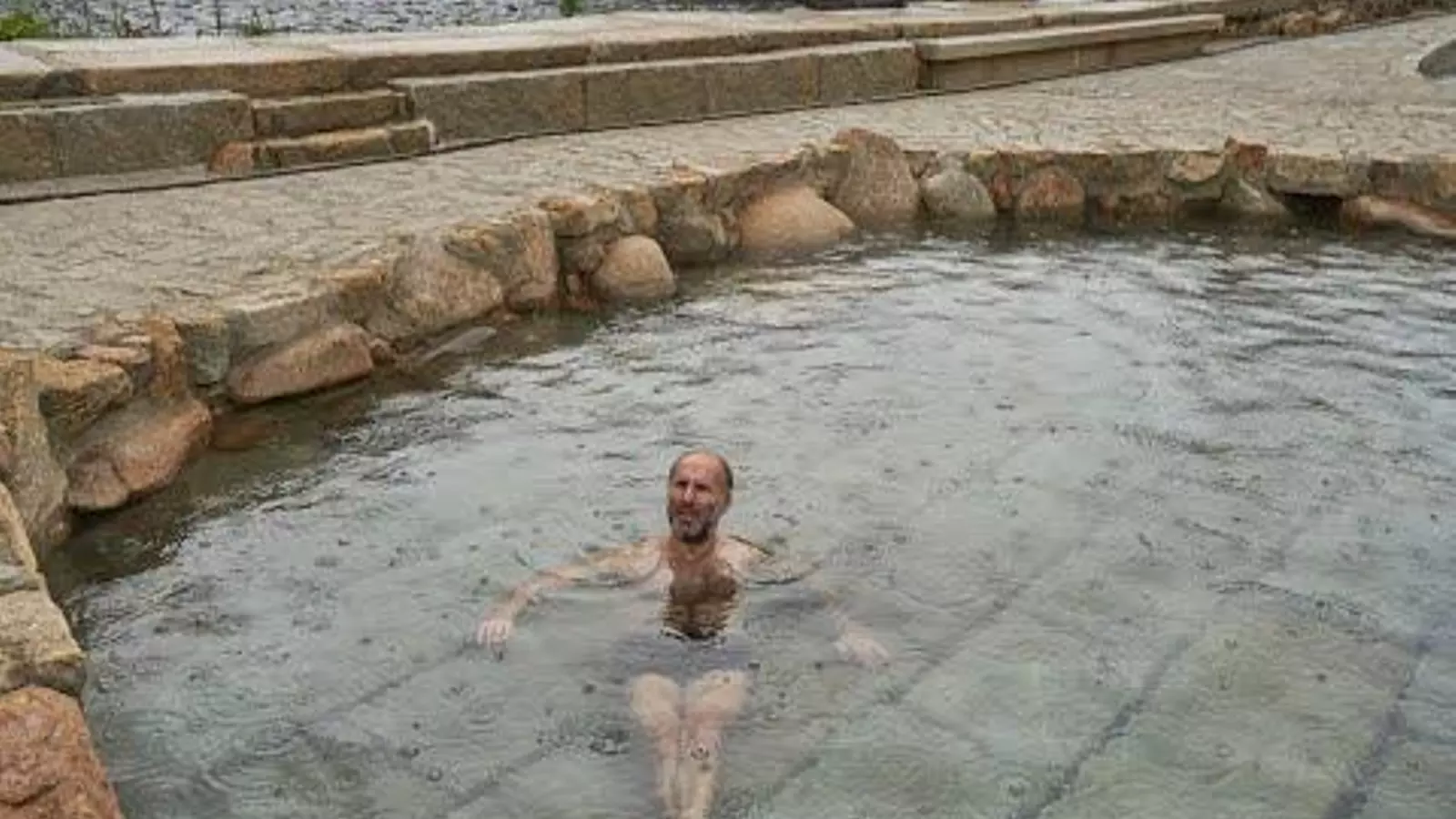 Jácome en bañador en la reapertura de las termas de O Muíño