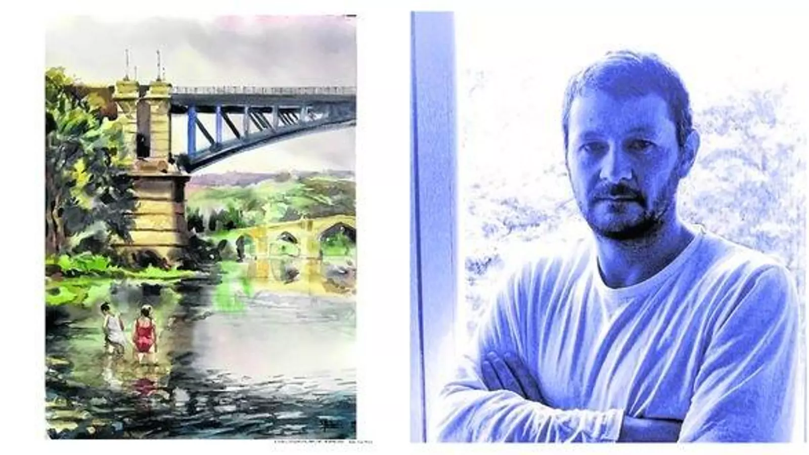 Introducinas na paisaxe. É un tema moi habitual da pintura e parecíame moi apropiado, pero teñen que ser protagonistas o río e maila ponte, que ocupa a maior parte do cadro, aínda que esté ao fondo da escena. A idea pareceume que era como quitarlle un pouco de "ferro" ao tema.