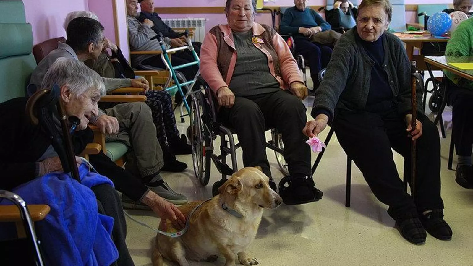 Alguno de los mayores con problemas cognitivos no lo explica, pero no hace falta al ver su cara de felicidad al abrazar al perro, que se muestra tranquilo y confiado.