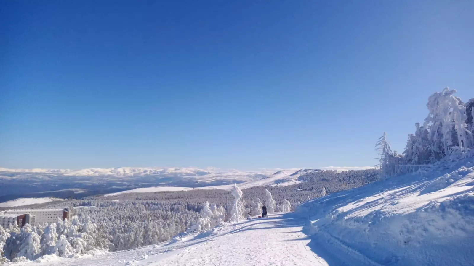 El cielo azul y el suelo blanco. Así luce hoy Manzaneda. La gran cantidad de nieve se extiende por todo el horizonte. Un buen número de ourensanos subieron a disfrutar del paisaje y el aire puro aprovechando el festivo. Mientras, la estación todavía sigue cerrada. Los Técnicos de Artabria que visitaron la estación para su apertura confían en hacerlo en un plazo de 15 días.