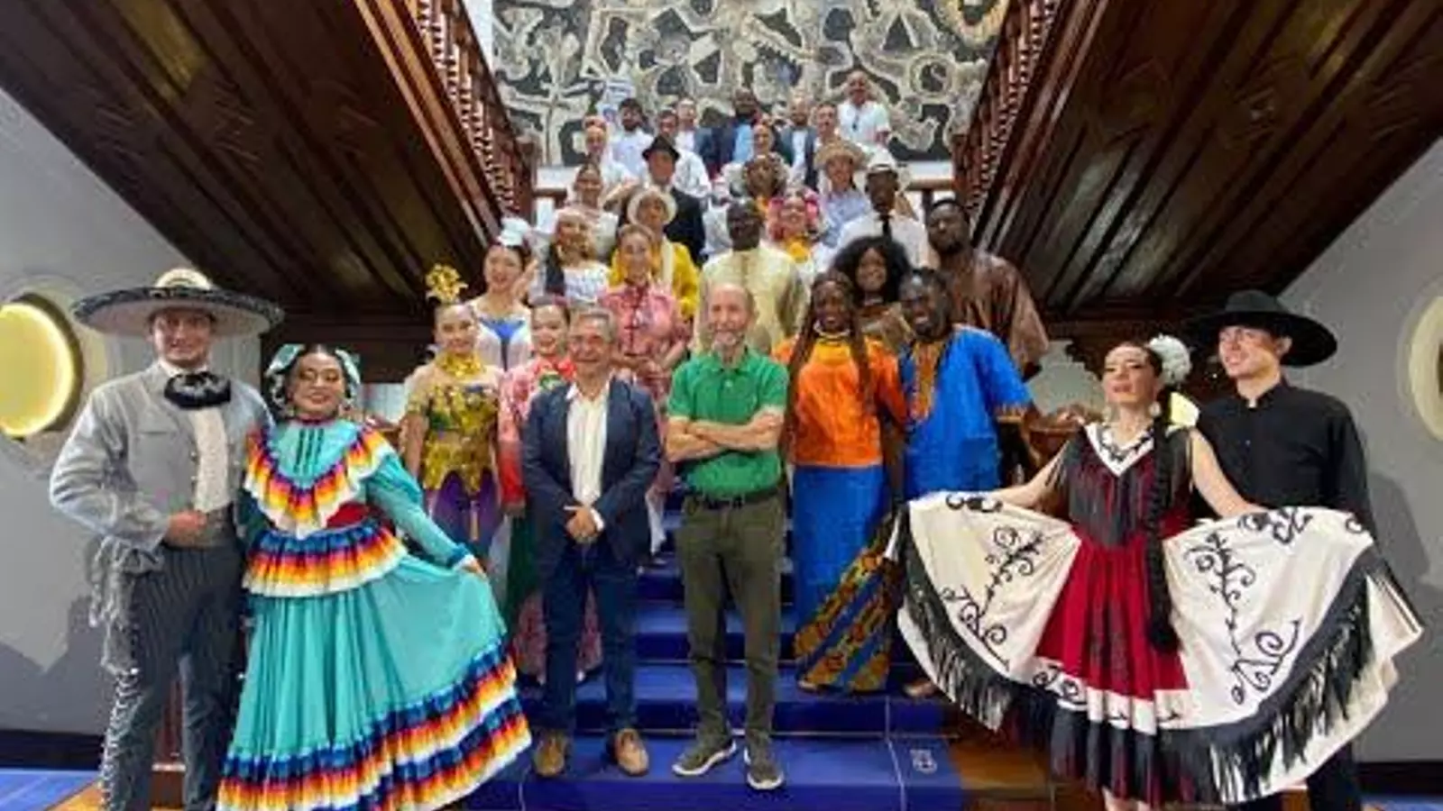 Los grupos participantes en la nueva edición de las Xornadas de Folclore visitaron este miércoles el salón de plenos de la Diputación de Ourense. En concreto las formaciones Fundación Ballet Folclórico de Nobsa (Colombia), Ballet Folk. Instituto Tecnológico de Celaya (México), Academia Andrés Valiente, Danzas y Proyecciones Folklóricas (Panamá), Kud Srem (Serbia), Ballet Jammu (Senegal) y Yuan Yuan Dance Group (Taiwán) estuvieron con el presidente provincial, Luis Menor.