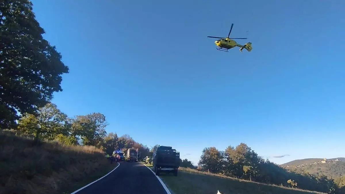 Efectivos de Urxencias Sanitarias trasladados hasta el lugar solicitaron la asistencia del helicóptero medicalizado del 061del Complexo Hospitalario Universitario de Ourense (CHUO) para trasladar al ciclista que, según el 112 Galicia, se encontraba inconsciente tendido en la carretera.