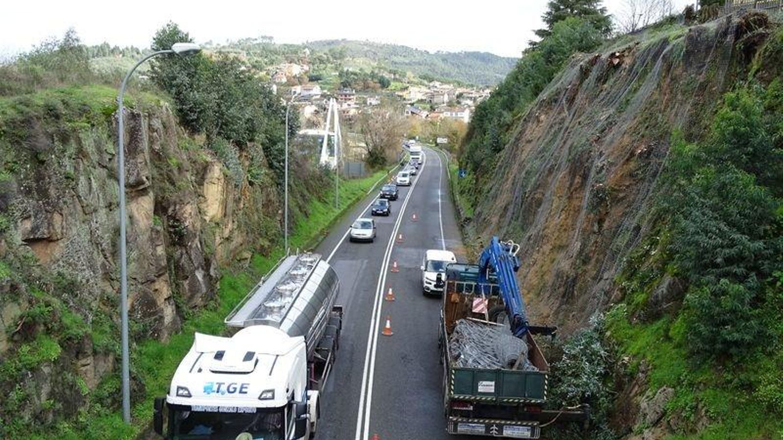 La ladera por la que discurre la N-120, a la altura de la pasarela del Loña ya fue objeto de una actuación de mejora a finales del pasado verano. Varios trabajadores talaron árboles para evitar los sucesivos desprendimientos que se registraban hasta ahora en la zona. En la Subdelegación del Gobierno recuerdan que hay más actuaciones de mejora previstas a lo largo del trazado.