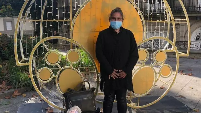 “Vivir en la calle es duro, sobre todo porque a veces te echan de los sitios o porque hace frío. A veces me suelto el pelo para que se me pase”, explica Carmen. Lleva puestas hasta siete capas de ropa, todas negras, la mayoría de ellas chaquetas que no se suele quitar, solo para posar junto a las cenizas de su madre frente a la decoración navideña del Concello, una celebración que le interesa lo justo.