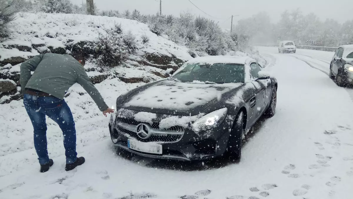 La nieve comenzó a descargar con fuerza ayer poco antes de las siete de la mañana. Una hora más tarde, el enlace de la autovía A-52 con A Gudiña registraba el primer accidente. Una conductora (resultó herida leve) se salió de calzada al pisar el freno de forma brusca. Durante la jornada, se registraron otras cuatro salidas de vía en A Mezquita, Calvos, Trives, y Chandrexa. En este municipio, Protección Civil tuvo que despejar una carretera para que una ambulancia pudiera auxiliar a un enfermo.