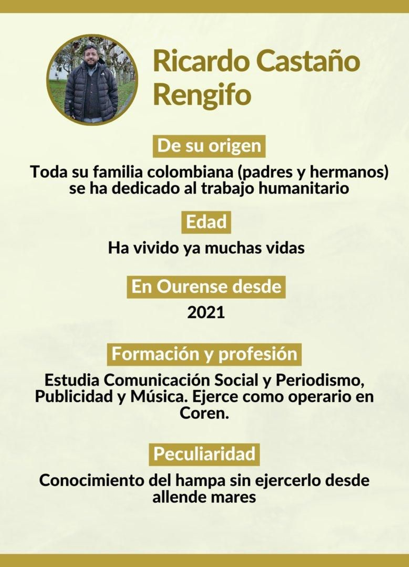 Domina la tecnología, conoce el oficio, Ricardo Andrés Castaño Rengifo (Cali, Colombia 1986) se muestra solícito en una primera entrevista por whatsApp (mensajería instantánea). Comunicador y publicista de formación llega a Ourense hace poco más de dos años donde se afinca amparado por la Ley reguladora del derecho de Asilo. Hombre viajado que ha vivido en EEUU así como en varios países de Latinoamérica, África o Yemen, equipara la ciudad que atraviesa el Miño a cualquiera de esos exóticos destinos. “Ourense me atrapó en la universidad”, recita en un audio sereno. Y antes de que uno pueda pensar en el puente romano o las barbas del Santo Cristo continúa un relato sobre la ruta del narcotráfico, el barrio de Covadonga, el clan de los vietnamita, las termas, el pulpo a la gallega, y la unión de colombianos y gallegos para hacer el mal.