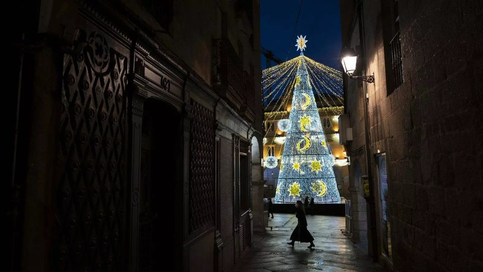 La iluminación de la Praza Maior es la más destacada de una ambientación navideña que según el Concello cuenta este año con más de 2 millones de puntos de luz, 392 arcos, 328 faroles y 592 árboles decoradas.