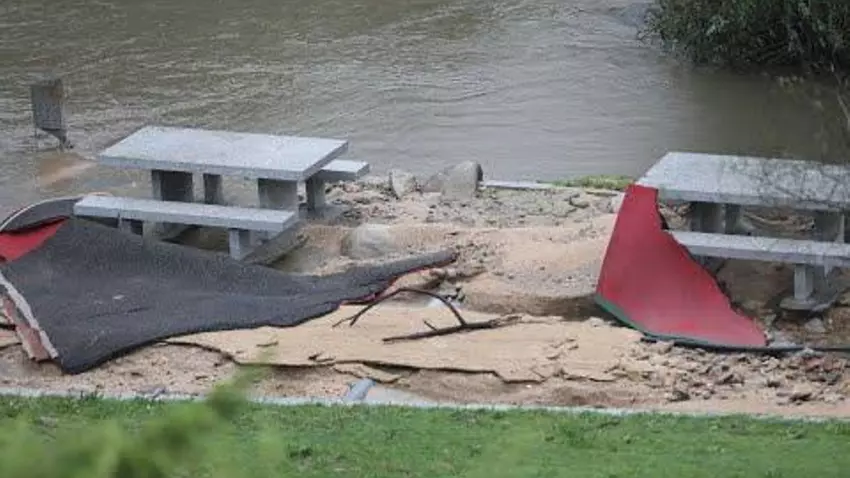 El agua ha arrastrado una gran cantidad de arena que ha dañado las diferentes instalaciones. El agua además ha destrozado los caminos, ahora mismo poco transitables, tanto en la zona de las piscinas como en los diferentes espacios termales; y el mobiliario está completamente destrozado.
