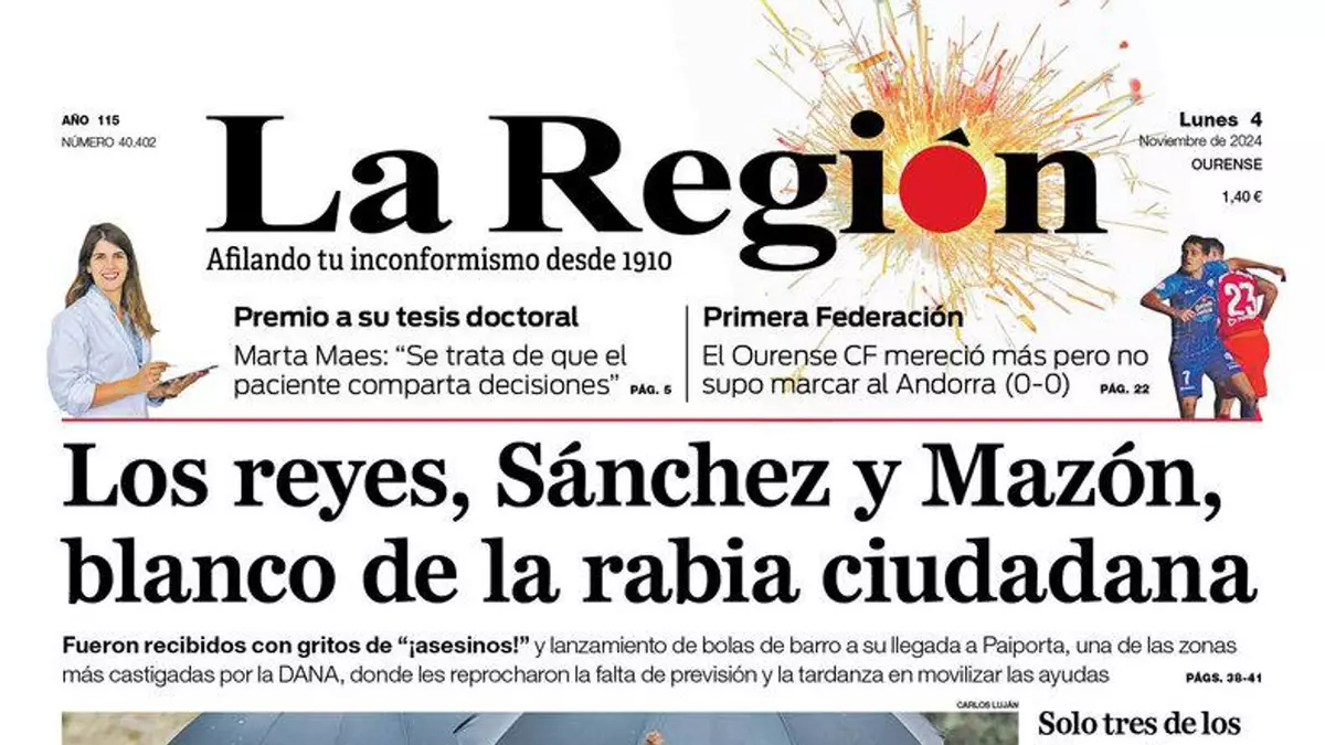 Estas son las principales noticias de este lunes, 4 de noviembre, en la portada de La Región.