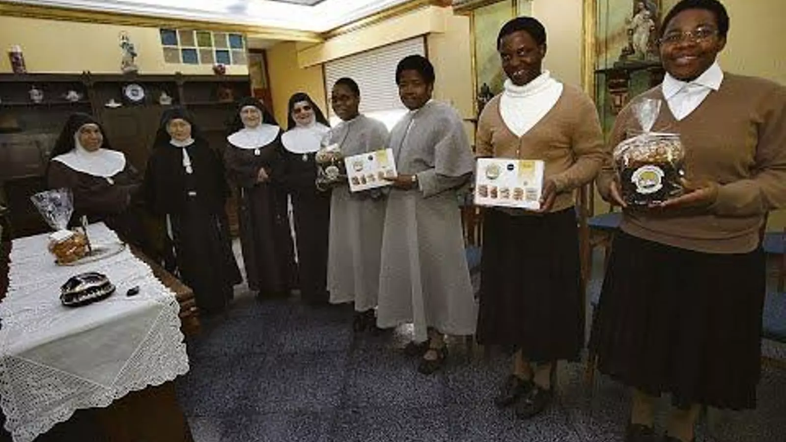 Los tambores tanzanos y el swahili suenan en la misa de los domingos en el Monasterio de San José de las Clarisas Reparadoras, en Vilar de Astrés. Cuatro jóvenes africanas son las únicas nuevas vocaciones en este convento de clausura, conocido por sus panetones y pastas artesanales. Dos postulantes y dos aspirantes, pasos previos al noviciado, procedentes de Tanzania y de Madagascar son las responsables de este aporte de juventud y exotismo a esta comunidad monacal. Allí, la media de edad de las 14 monjas o hermanas profesas es de 70 años, y la mayor, sor Antonia María, ya ha cumplido los 95.