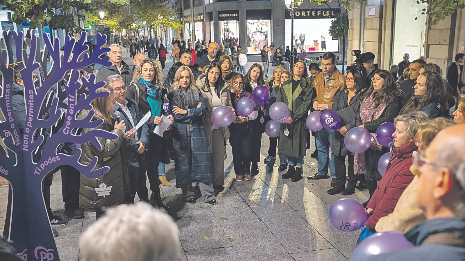 El Partido Popular de Ourense conmemoró ayer el 25N en la céntrica Rúa do Paseo con un mensaje de esperanza y apoyo a las víctimas. El acto, encabezado por el presidente provincial, Luis Menor, incluyó la instalación de un simbólico “árbol de la vida” frente a la antigua sede del Banco de España, donde los ciudadanos pudieron dejar mensajes de solidaridad.