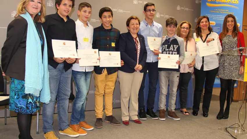A presidenta da Axencia Española de Consumo, Seguridade Alimentaria e Nutrición (Aecosan), Pilar Farjas, entregou onte ao equipo "El Ordenador", do Instituto do Couto, o primeiro premio do certame de consumo responsable Consumópolis na categoría de 1º e 2º de ESO a nivel nacional, nun acto que se celebrou no Ministerio de Sanidade. O equipo está composto por Marcos Vila Ferreiro, Alexandre Rodríguez Blanco, David Feijóo Díaz, Martín Álvarez Álvarez e Guillermo Soto García, coordinados pola profesora Francisca Vega Mondelo.