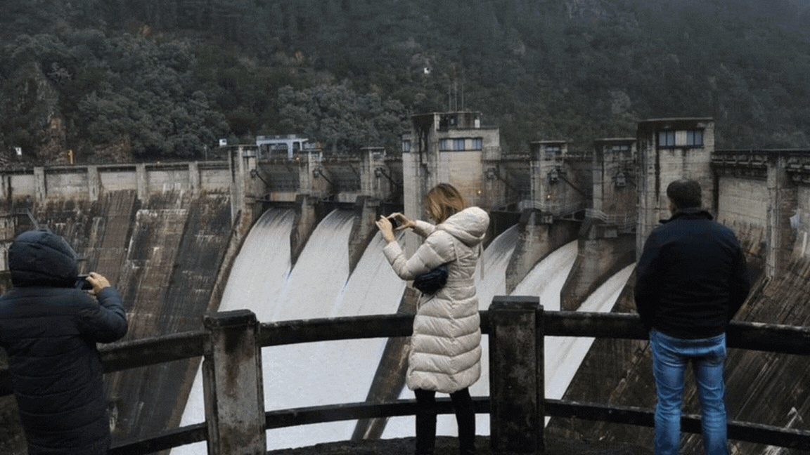 Desde el mirador que se encuentra en la subida a la aldea del mismo nombre se puede apreciar la espectacular vista de esta presa, que gana magnitud tras días de intensas lluvias.