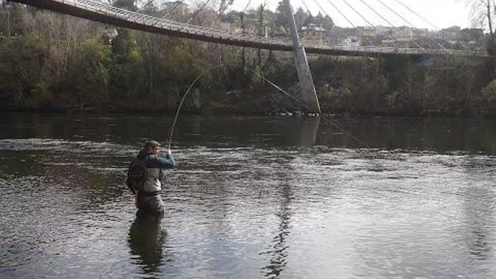 La temporada de pesca de la trucha continuará hasta el 31 de julio, pero la ilusión por empezar a capturar sus primeras piezas ha llevado a estos aficionados a calzarse los vadeadores ya el primer día, y meterse a fondo en las aguas del Miño.