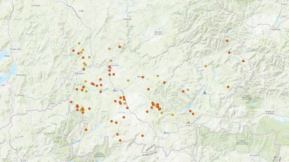 Entre las zonas más activas en cuestión de temblores, según la Red Sísmica Nacional, estarían la ciudad de Ourense, la zona de Tamicelas y Correchouso (próximas a Laza), algunos puntos del suroeste próximos a la frontera portuguesa, o el entorno de O Carballiño. La mayor parte de los temblores son solo apreciables por un sismógrafo, y no llegan a notarse entre los vecinos.