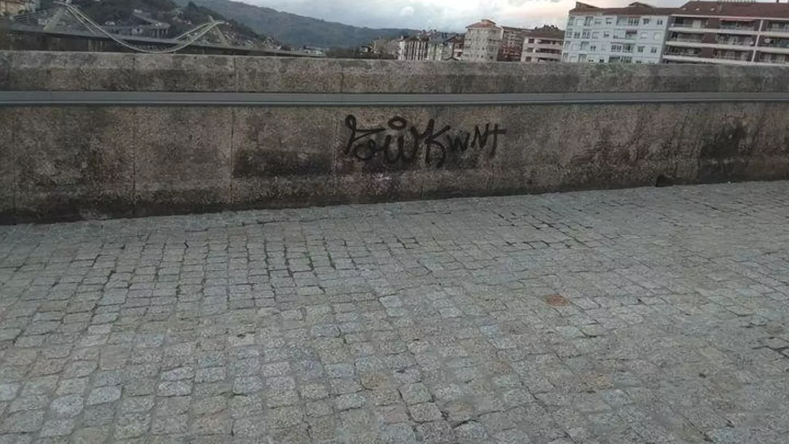 No hay rincón de la ciudad en el que los pintamonas no dejen su cochambrosa firma, les da igual que sea una puerta, una cristalera o la pared de una casa. Su estupidez no tiene límites y de ella tampoco se salvan los monumentos históricos como el Puente Romano de Ourense, lo que demuestra además su incultura y nulo interés por un patrimonio que es de todos.