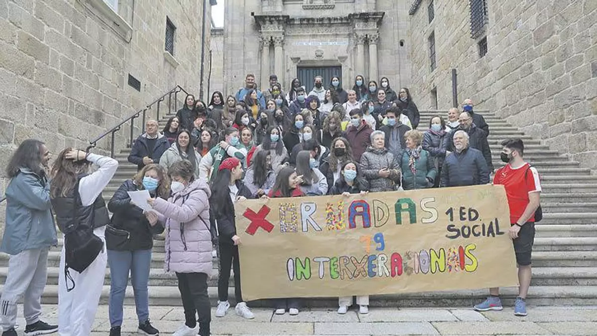 Megáfono en mano, los estudiantes leyeron un manifiesto en el que reivindicaron la importancia de abrazarse y estar juntos, de que la edad no sea una barrera y de crear recuerdos “mágicos” para siempre. Su profesor, Millán Brea, apostó por recuperar la ciudad para las personas y lamentó que “en Ourense hacemos actividades increíbles y cosas maravillosas, pero no se tienen en cuenta. Hablamos de una actividad de veinte años, de que pasaron más de diez promociones de estudiantes y de gente mayor que estuvo y ya no está”.