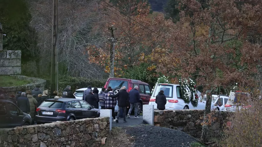 A partir de las cuatro de la tarde los dos coches fúnebres arrancaron desde el velatorio hasta la iglesia de Santiago de Requiás, a apenas cien metros del velatorio, bajo un silencio atronador, muestra de la gravedad y el impacto de lo sucedido. Allí se celebró el funeral y la última despedida al matrimonio Vaz-Araújo, que deja un vacío y un desconsuelo irreparable en esta localidad y en todo el municipio.
