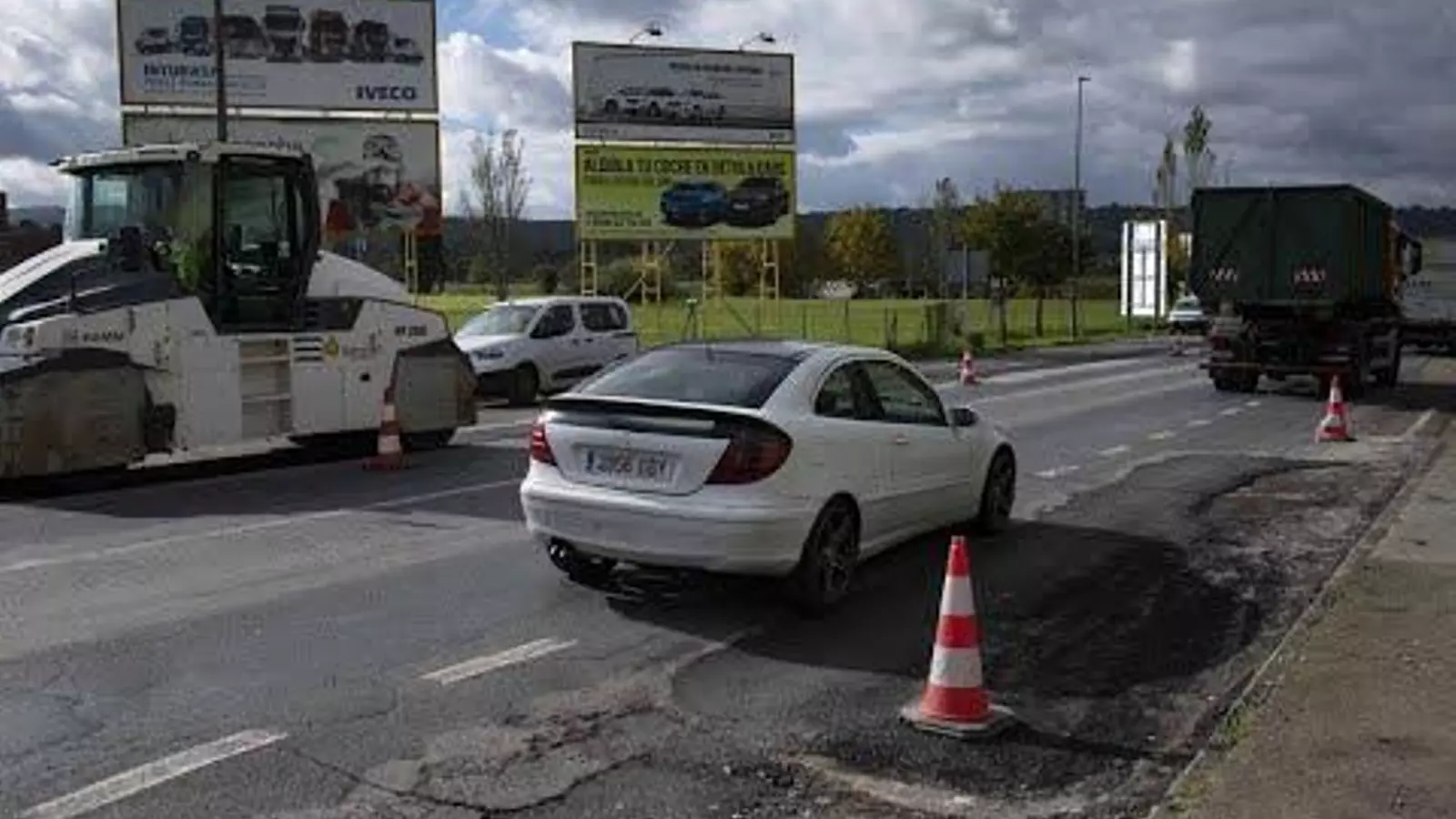 Las obras en la calle principal del Polígono de San Cibrao, la OU-0517, pasaron factura el miércoles a varios vehículos. Por la noche, se registraron casi una decena de pinchazos de rueda a consecuencia de un socavón y la Guardia Civil intervino para levantar atestado en en tres ocasiones.
