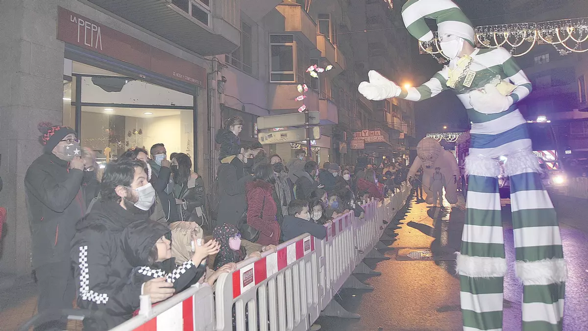 -Que la cabalgata dejó entrever una de las carencias de la city? -que clama al cielo que vías supuestamente principales, como la rúa do Progreso (con este nombre, además), apenas dejen sitio para las personas? -que, como lado positivo, los voluntarios no se cansaron el brazo, porque alcanzar las últimas filas de niños era bien sencillo en una acera con apenas dos metros de ancho?