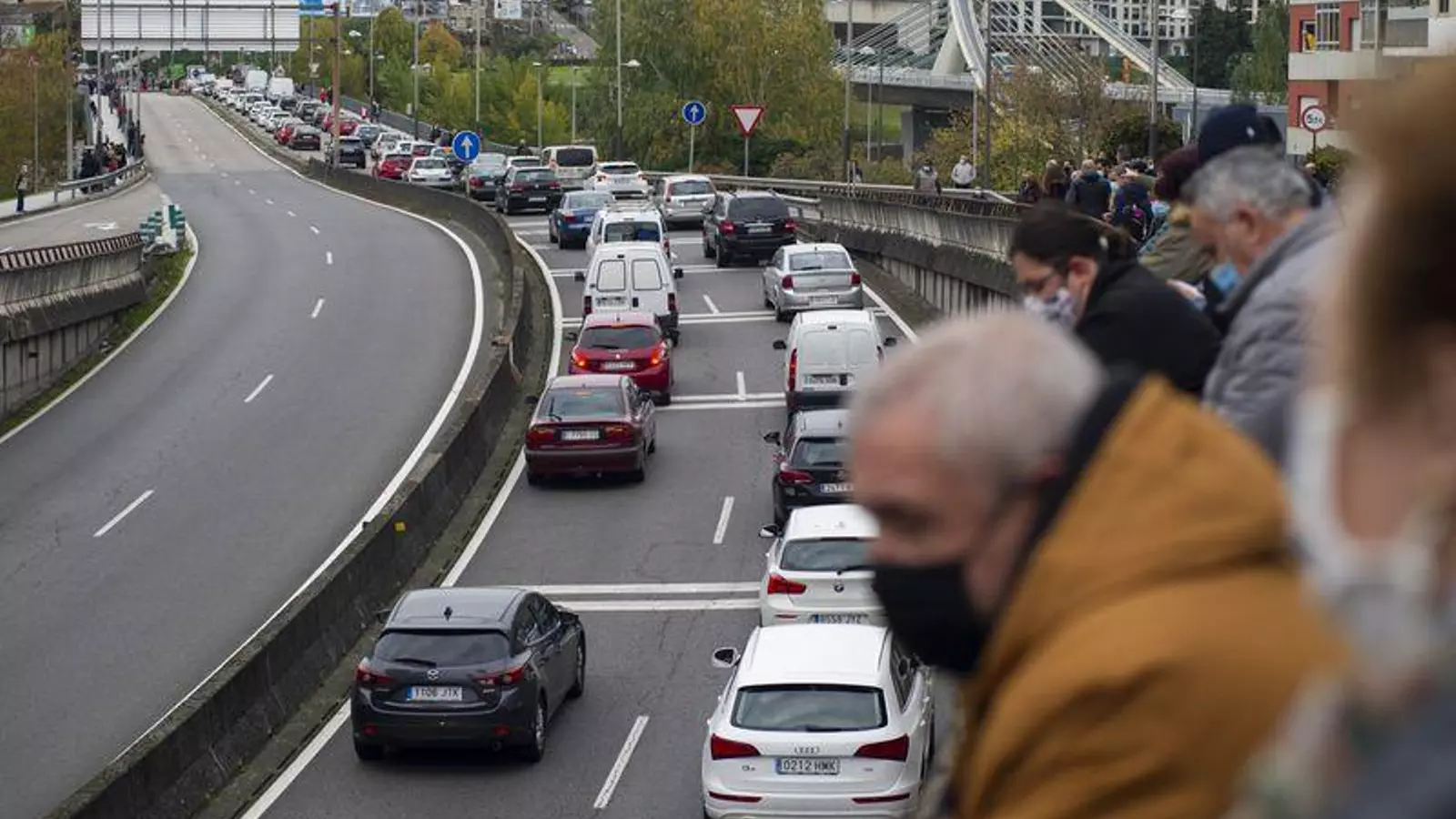 -que La Vuelta provocó atascos importantes en varios puntos de la ciudad? -que nos gusta mucho el ciclismo pero lo importante era no llegar tarde a trabajar? -que efectivamente alguno llegó tarde a trabajar? -que como se aprecia en la imagen, varios conductores aprovecharon para reunirse y charlar animadamente con sus vecinos viales (no convivientes) mientras se reabría la circulación?