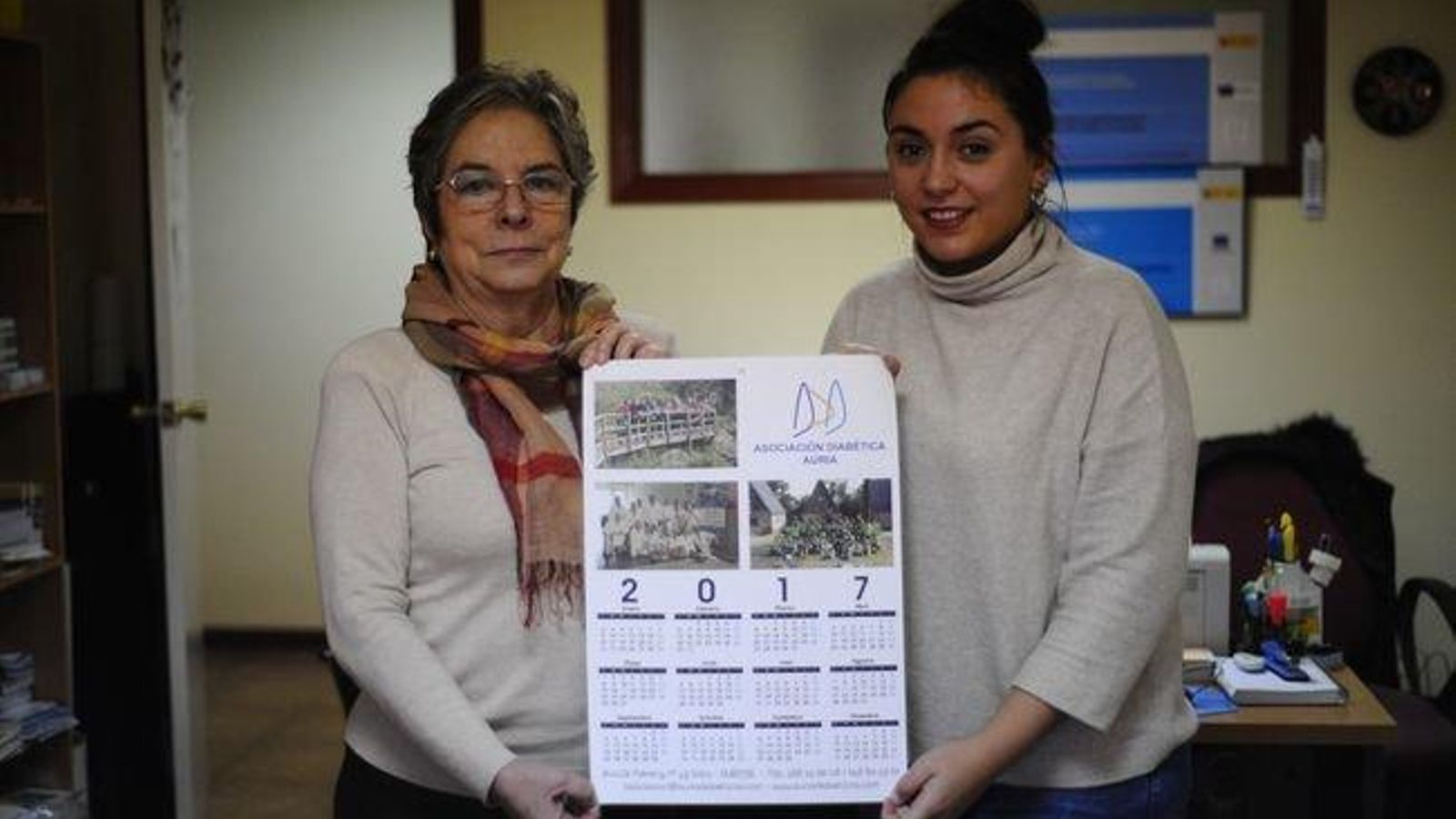 Por un euro, la Asociación Diabética Auria vende sus tradicionales calendarios, en tamaño póster. "Más que recaudar fondos, lo que pretendemos es hacernos visibles", puntualiza María Paz Gomez del Valle Ochoa, su presidenta. "La diabetes es una enfermedad silenciosa; es decir, mucha gente la padece pero no lo sabe. Por eso, lo que queremos es darnos a conocer y que la gente tenga cerca en su casa el número teléfono y dirección para ponerse en contacto con nosotros".