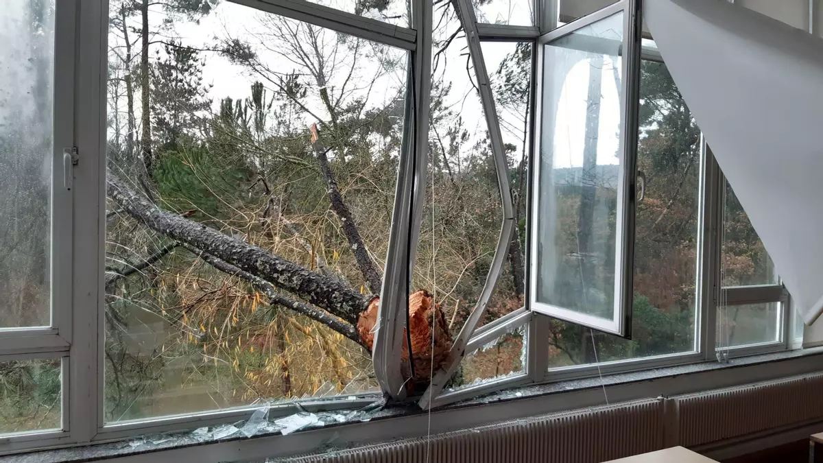 En Ribadavia, el tren que cubría la línea Vigo-Barcelona chocó contra un árbol (no se registraron heridos) que cayó sobre la vía férrea. El convoy tuco que ser remolcado por una máquina hasta la estación de Ourense, según Adif.