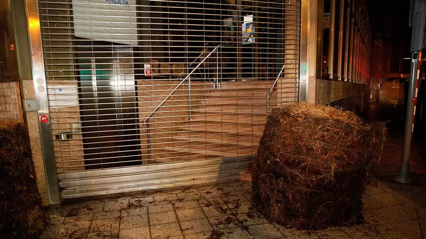 Durante la noche, la policía ya estuvo presente en el lugar para mover los rollos de paja que impedían la entrada. Lograron despejar la entrada a los edifcios y en la mañana de este viernes únicamente quedaban presentes los tractores tan característicos de estas protestas.