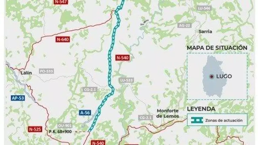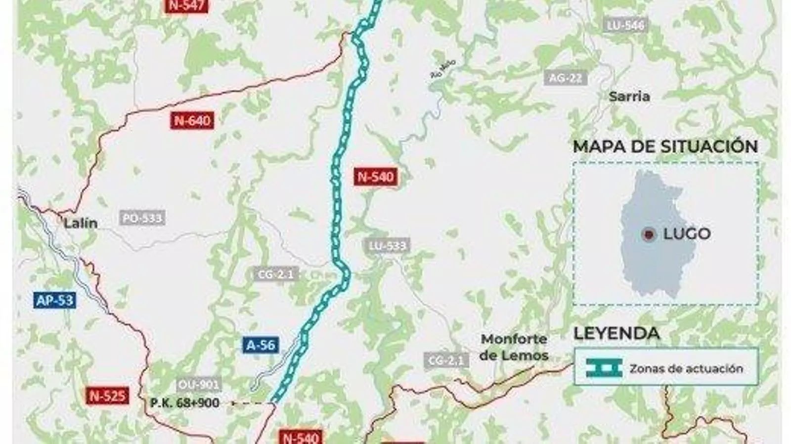 En total, según explica el ministerio en una nota de prensa este miércoles, la actuación se llevará a cabo a lo largo de 69 kilómetros en la vía que va de la capital provincial al límite con Ourense.