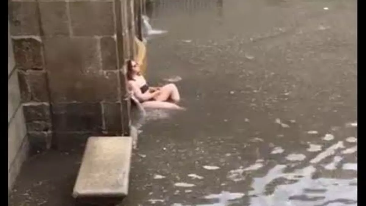 La fuerte tormenta ha paralizado la ciudad de Ourense, a excepción de dos particulares vecinos. Cuando la lluvia arrastraba terrazas y desbordaba los puentes de Ourense, dos valientes han decidido disfrutar de un relajante baño en As Burgas.