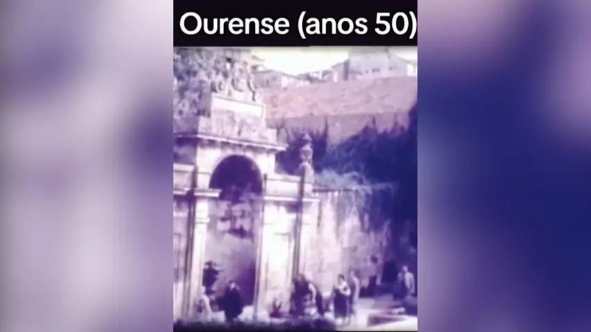 El video, grabado en formato Super 8, captura lugares clave de la ciudad incluyendo As Burgas, donde las ourensanas se acercaban a recoger agua de las fuentes termales, reflejando una escena cotidiana de aquella época.