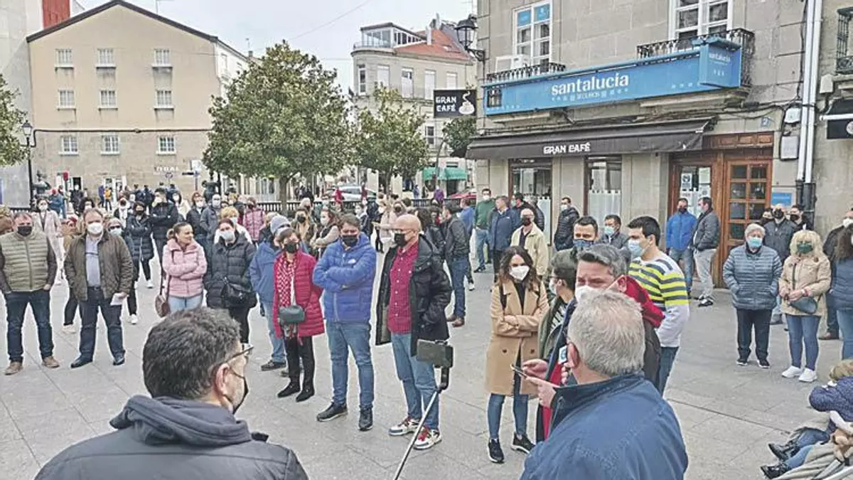 Mientras que en la ciudad el seguimiento del paro hostelero fue casi nulo, como ocurrió en casi toda la provincia, en el centro de la capital limiana se dieron cita unas 50 personas, entre profesionales del sector, vecinos e incluso la alcaldesa, Elvira Lama, bajo el lema “A hostalaría de Xinzo para”. El presidente de los hosteleros, Alberto Rúa, leyó un manifiesto en el que detalló la situación que viven, marcada “pola suba esaxerada e desproporcionada da enerxía”, lo que lastra su economía. Los limianos pararon ayer “para plantarlle cara a unha inxusticia tras outra”. “Por se fora pouco o peche masivo dos nosos negocios durante a pandemia, agora pagamos a luz deste ano e do que estivemos pechados”, aseguró Rúa antes de ser despedido por una sesión de aplausos.