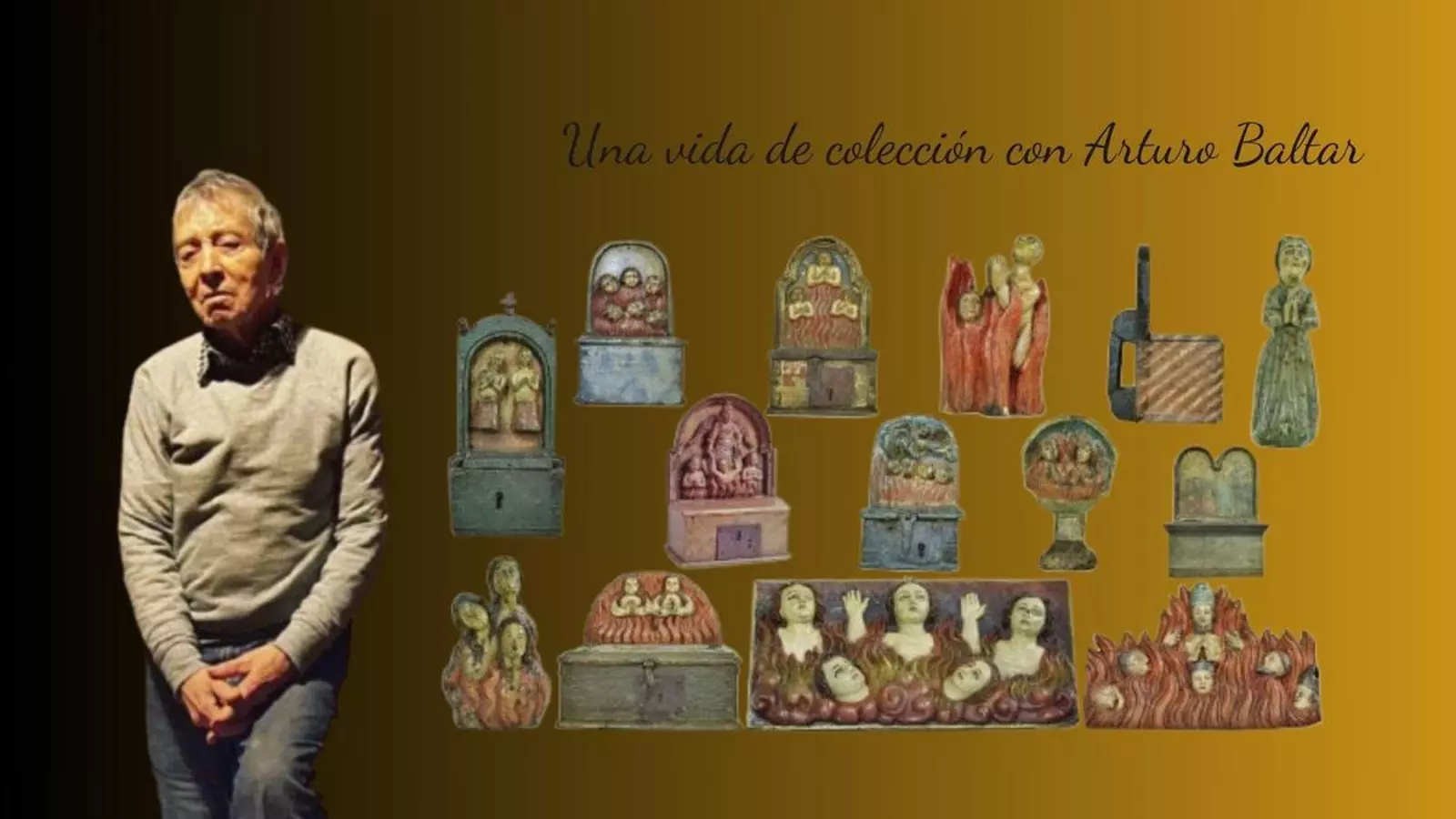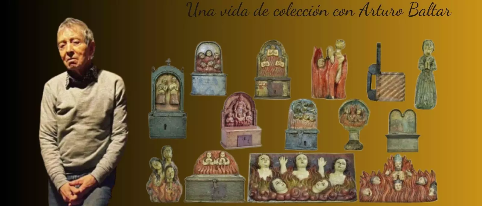 De Arturo Baltar Castro de Noalla 1924- 2017) puede escribirse y se ha escrito mucho, de su numerosa obra de escultor y pintor y de su vida de personaje singularísimo, que es lo que se suele decir con gentes difíciles de clasificar como es su caso. En dos entrevistas publicadas en La Región en los años sesenta se definía asimismo como: “irónico, triste, pesimista. Fui un niño preocupado, cuyo juego preferido era organizar procesiones, ser monaguillo, apagando y encendiendo velas y cantando gregoriano”. No sé si llegó a cantar gregoriano pero sí que actuó como aficionado en cabarets por el sur del país. Baltar, gran aficionado a las grandes caminatas, fue coleccionista de piezas populares como candiles, múltiples cacharros y la colección de petos de ánimas que hoy nos ocupa.