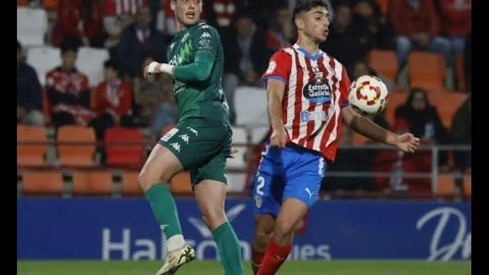 En el Anxo Carro salieron, como ya es habitual, valientes, atrevidos y dejando claro sus intenciones. Pero los lucenses, que también están en un gran momento no se amilanaron y tutearon a los verdes. Javi Moreno, sumado al ataque, controló de espaldas, dio media vuelta y sacó un derechazo, como si fuera un delantero nato, que se fue fuera por muy poco. La réplica local fue de Raúl Hernández, pero para esos sustos está Diego García. Empate a cero al descanso y todo controlado para los de Raúl Jardiel.