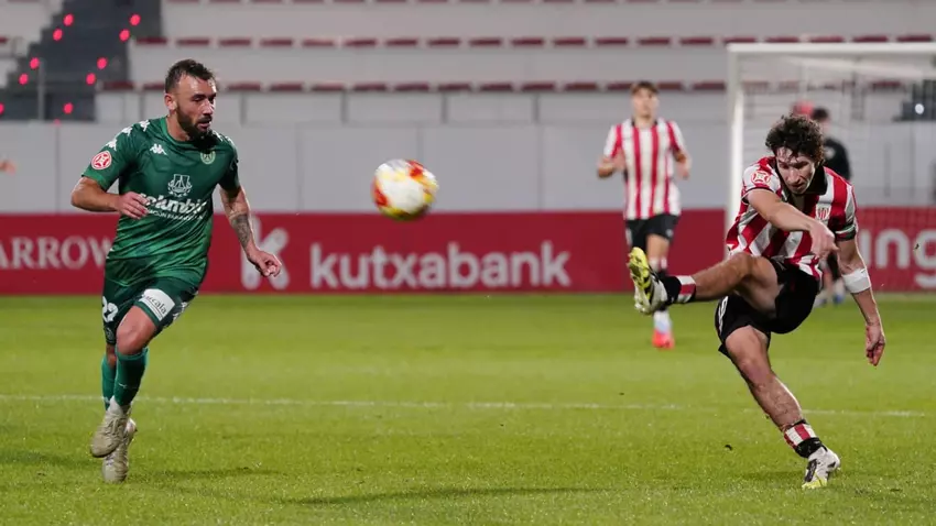 Pero en el minuto 22, el Bilbao Athletic se adelantó. Pase al interior del área del Arenteiro, Aritz Conde cargó a Llácer, que se fue al suelo, se quedó con la pelota y a pesar de no tener casi ángulo cruzó a la escuadra larga para poner el 1-0. El árbitro revisó la acción, pero mantuvo su decisión inicial. Gol.