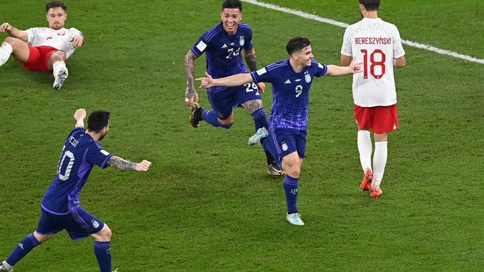 Polonia no reaccionó. Y jugaba con fuego. El partido era de Argentina que no frenó. Encontró el segundo en el último tercio del choque, en el minuto 68 cuando Enzo Fernández inventó un pase hacia Julián Álvarez, de espaldas. Se giró, se hizo espacio y su tiro fue imposible para el portero de Polonia. El delantero del Manchester City, de 22 años, se estrenó como goleador. No había escenario mejor.