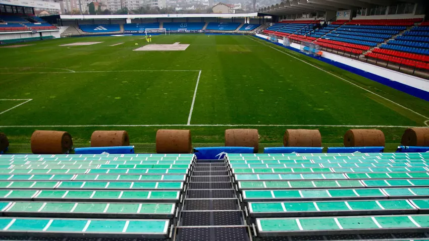 Además, de las gradas supletorias, que albergarán a unas 2.700 personas cada una, esta mañana de martes se han comenzado a instalar más de una decena de rollos de césped para que este presente mejos aspecto. Ya la semana pasada, en el partido de los azulones frente al Barakaldo, se colocaron algunos de ellos en zonas localizadas del campo.